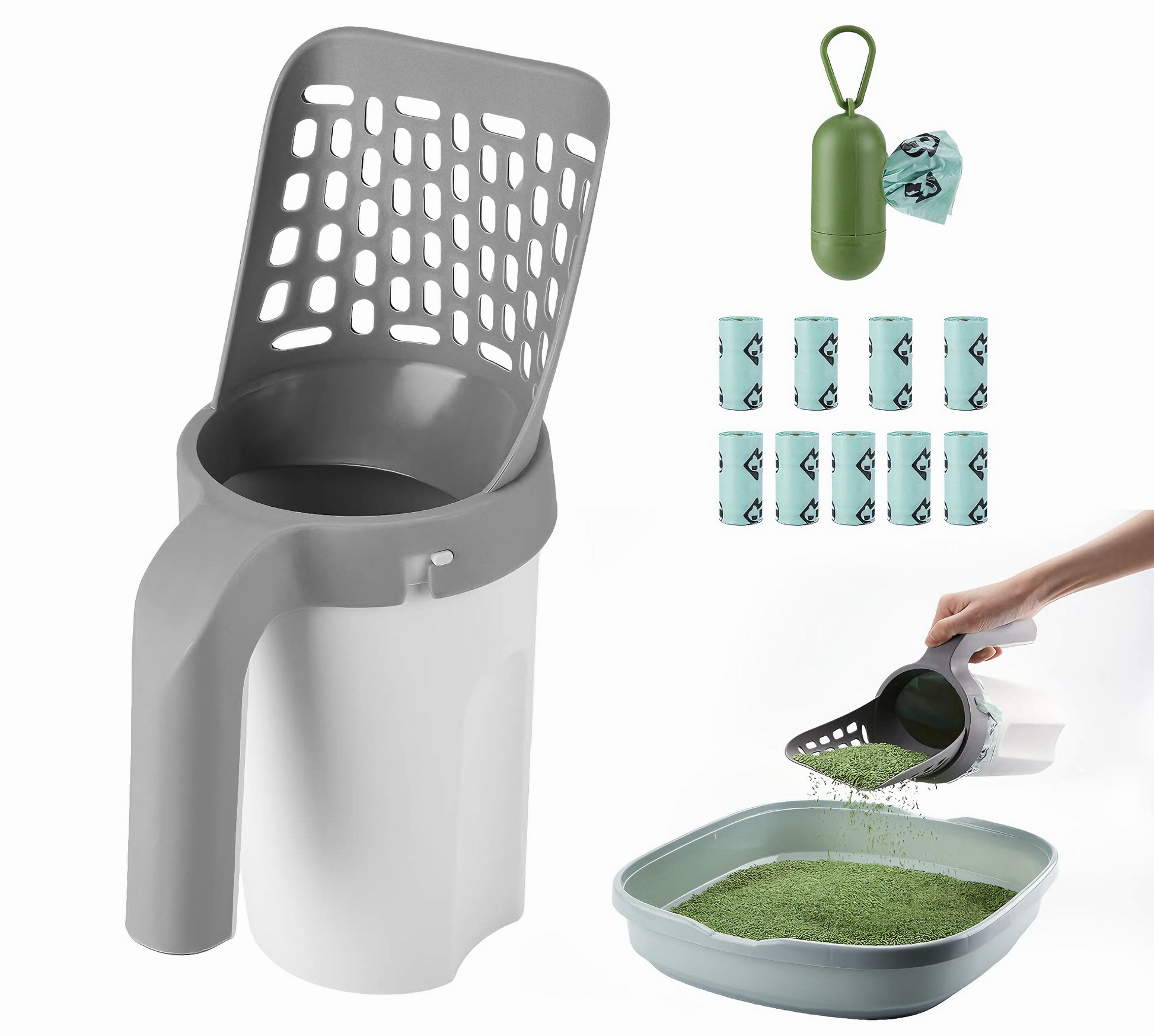Håll kattlådan ren på ett smidigt och hygieniskt sätt med denna innovativa kattsandskopa! Den har en inbyggd behållare där du enkelt kan separera klumpar och smuts från den rena sanden. Perfekt för kattägare som vill göra rengöringen snabbare och mer effektiv.