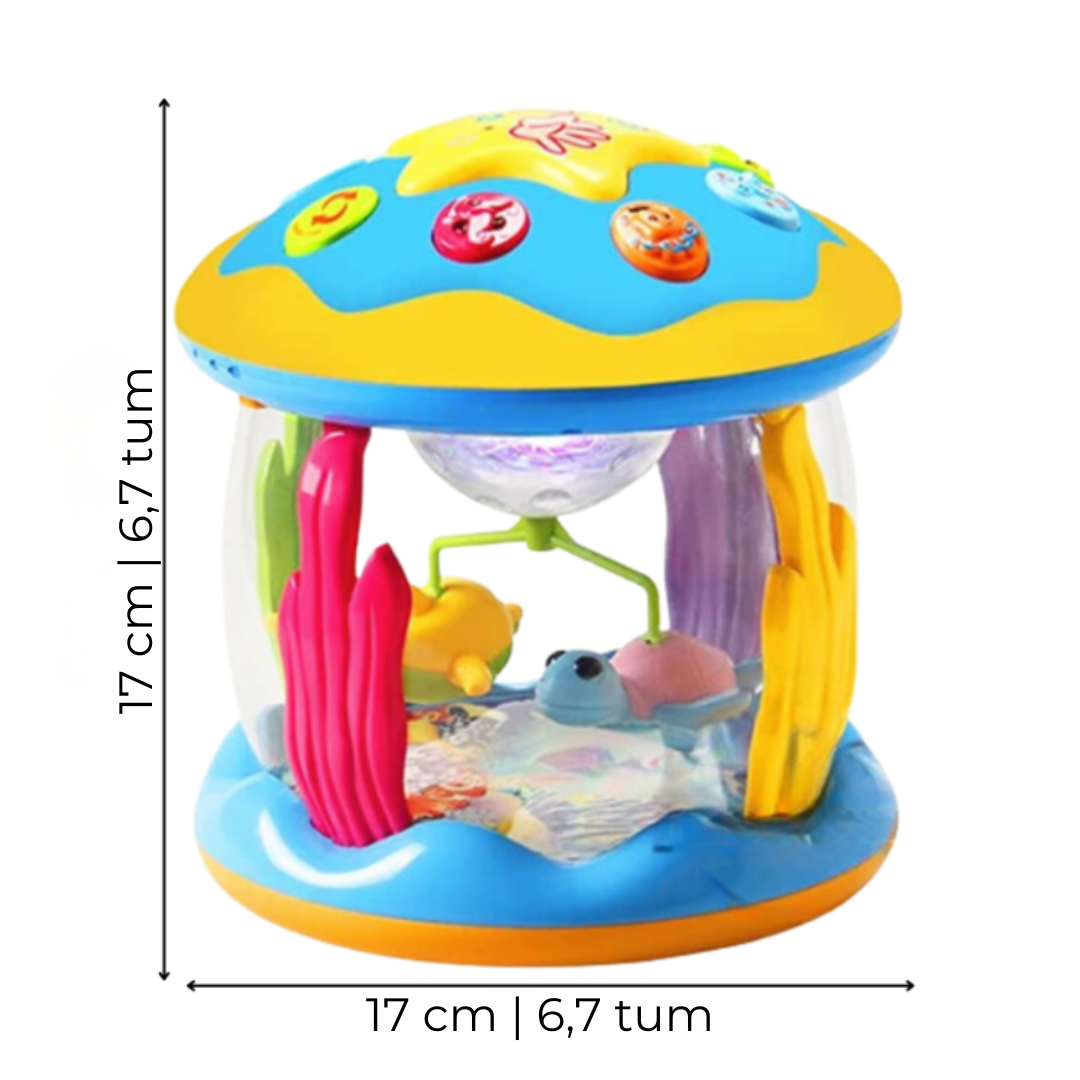 Perfekt för bebisar i åldern 0–3 år. Denna förtrollande karusell främjar inte bara tidig inlärning, utan stärker också känslomässiga band genom ljud och visuell stimulans. Det är mer än en leksak – det är en följeslagare i ditt barns utveckling.