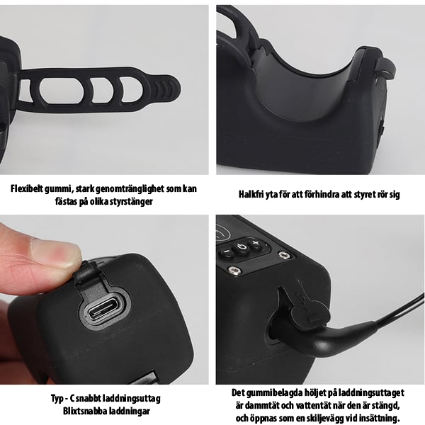 - Ljusläge: Starkt ljus/svagt ljus/blinkande/SOS