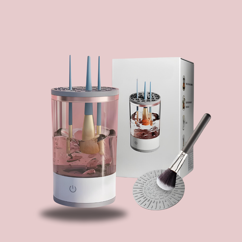 På bara några minuter rengör vår Elektroniska Sminkrengörare dina sminkborstar på djupet. Allt du behöver göra är att fylla behållaren med vatten, din favorit rengöringslösning och trycka på knappen!