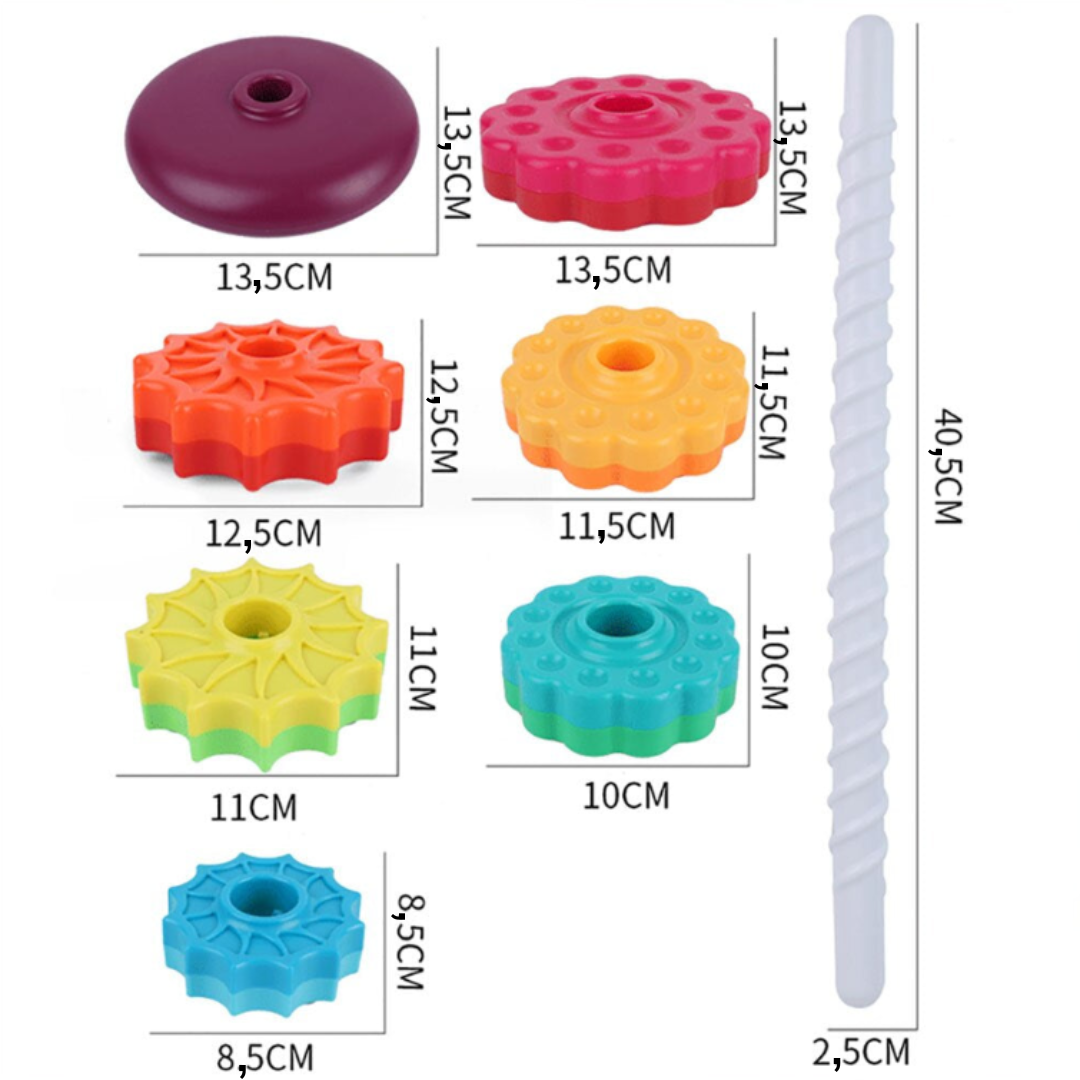 Letar du efter en leksak som inte bara underhåller utan också utbildar? SnurraStapel™ Stapeltorn är utformat för att kombinera glädjefylld lek med verkliga utvecklingsfördelar. Varje roterande skiva är en inbjudan för ditt barn att utforska former, färger, balans och rörelse – allt medan de har roligt!