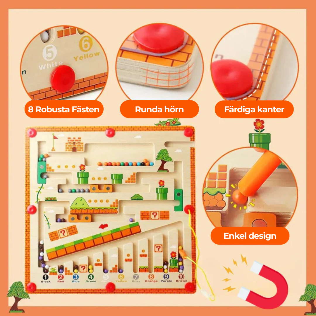 SuperKula™ är en magnetisk färg- och sifferlabyrint som är särskilt utformad för att hjälpa barn i åldern 3 till 8 att lära sig genom lek. Med sina starka färger och smarta labyrintdesign främjar den utvecklingen av finmotorik, färgigenkänning och räkneförmåga.