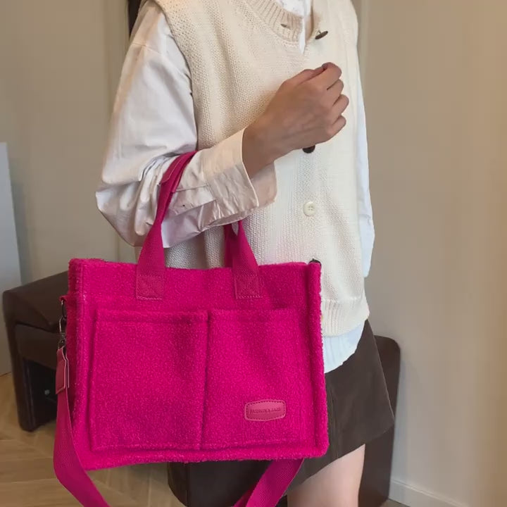 Med TeddyTote™ kombinerar du mode och funktion i en oemotståndlig väska. Det mjuka teddytyget känns härligt och ger din outfit en mysig och modern look. Perfekt för vardagsbruk – oavsett om du ska shoppa, jobba eller ta en dag på stan.