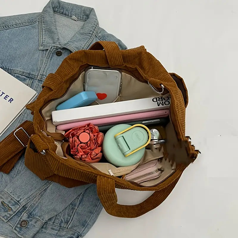 Plats för laptop, böcker, sminkväska och allt annat du behöver under dagen – utan att kännas klumpig.