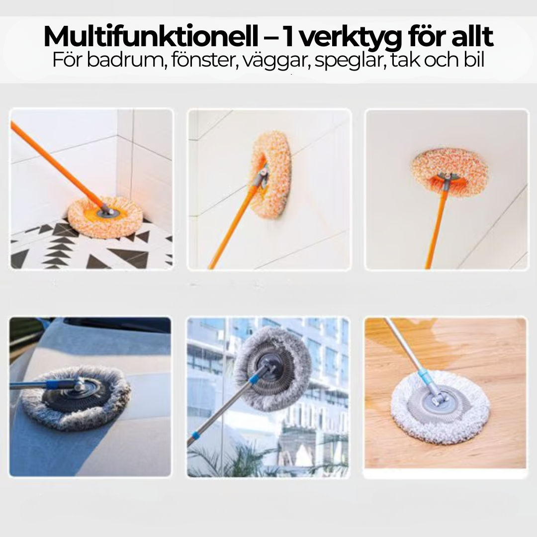VinkelVår™ är designad för att göra din städning enklare och mer effektiv. Det flexibla huvudet följer smidigt varje rörelse och når enkelt hörn, kanter och svåråtkomliga ytor. Med det utdragbara handtaget kan du anpassa längden efter behov – slipp onödigt böjande eller att stå på tå. Oavsett om du städar kakel, parkett, speglar eller möbler, är detta det enda verktyget du behöver – kompakt, kraftfullt och oändligt mångsidigt.