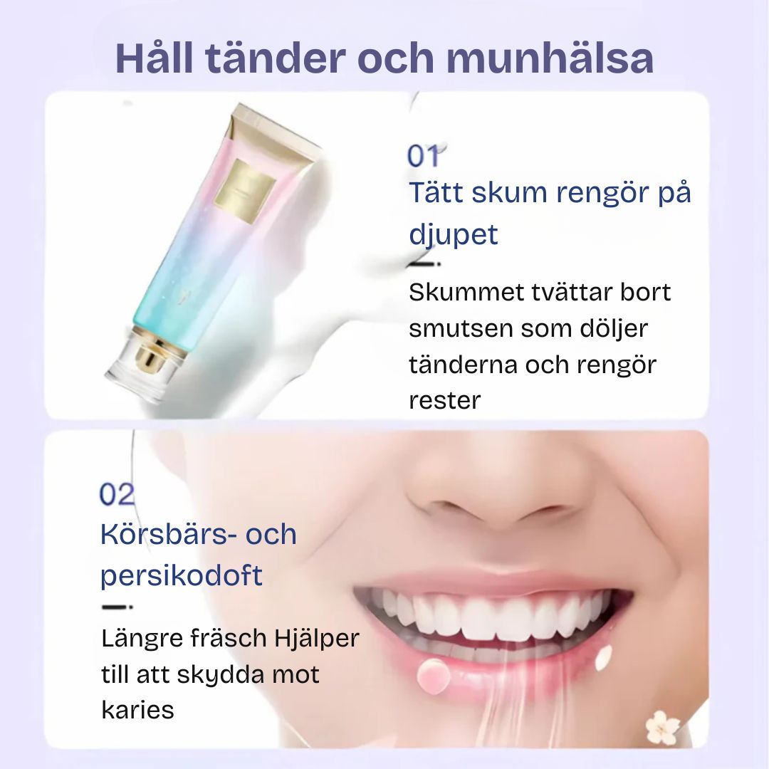 Denna tandkräm har en mjuk konsistens som skummar upp fint. Den lämnar en frisk och ren känsla i munnen i flera timmar. Säg adjö till dålig andedräkt och välkomna självförtroendet. Den uppfriskande smaken gör varje tandborstning till en mini-spa-upplevelse för munnen.